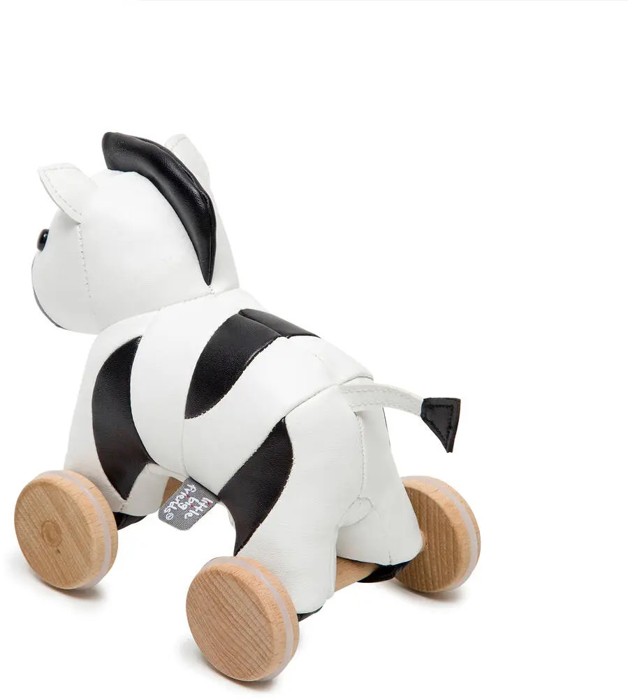Cordon détachable avec deux longeurs de corde pour suivre la croissance de l'enfant. Roues en bois. Matière ultra douce.