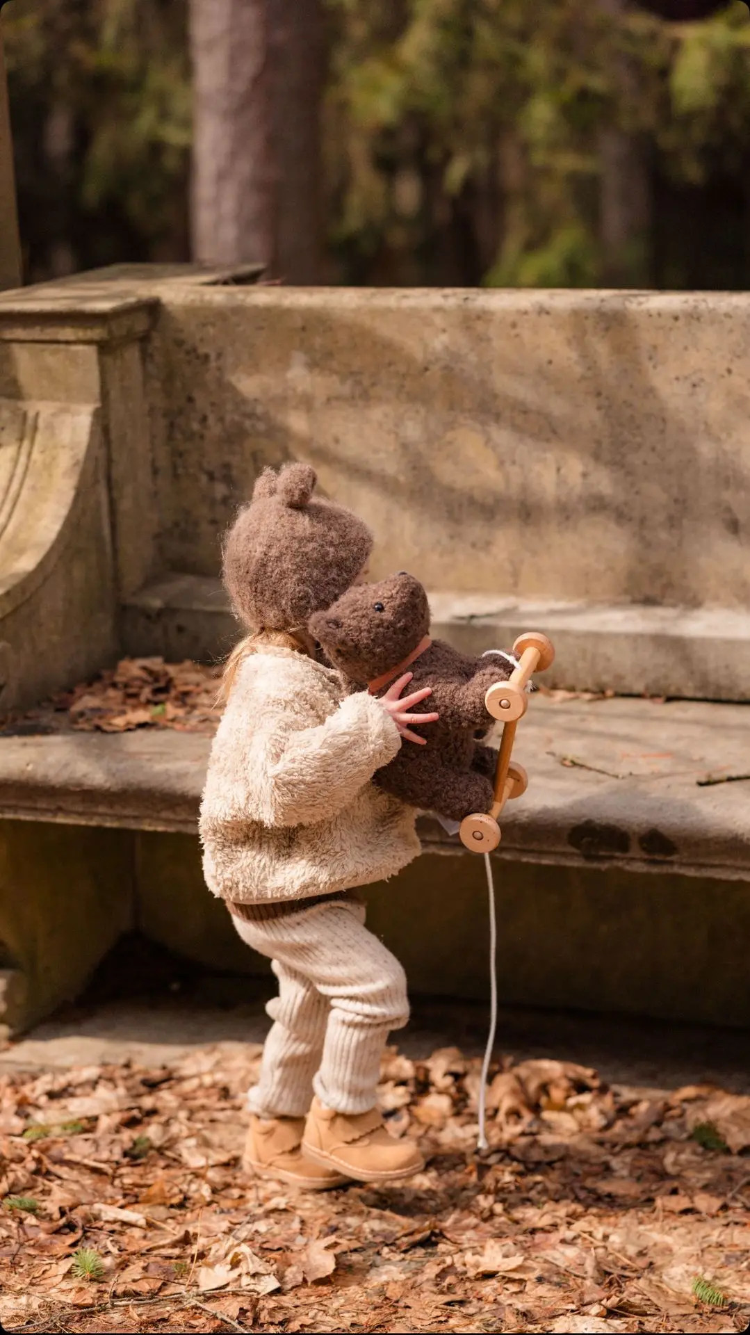 Regardez les petites mains s’émerveiller devant la magie des roues qui tournent et de la peluche toute douce qui roule en rebondissant légèrement. Ce compagnon câlin à roulettes transforme chaque couloir en terrain d’aventure, glissant en douceur sur ses roues en bois naturel avec ce bruit feutré si réconfortant. Sa peluche moelleuse brun chocolat offre une texture agréable au toucher, parfaite pour stimuler le sens du toucher des tout-petits. Construit en bois de hêtre robuste, ce jouet est conçu pour résister à toutes les explorations enthousiastes des jeunes enfants. Les finitions artisanales et le collier rouille classique ajoutent une touche d’élégance et de charme à toute chambre de bébé. Un jouet intemporel et évolutif, compagnon des premiers pas comme des aventures imaginaires. Le cadeau parfait pour les petits explorateurs dès 12 mois.