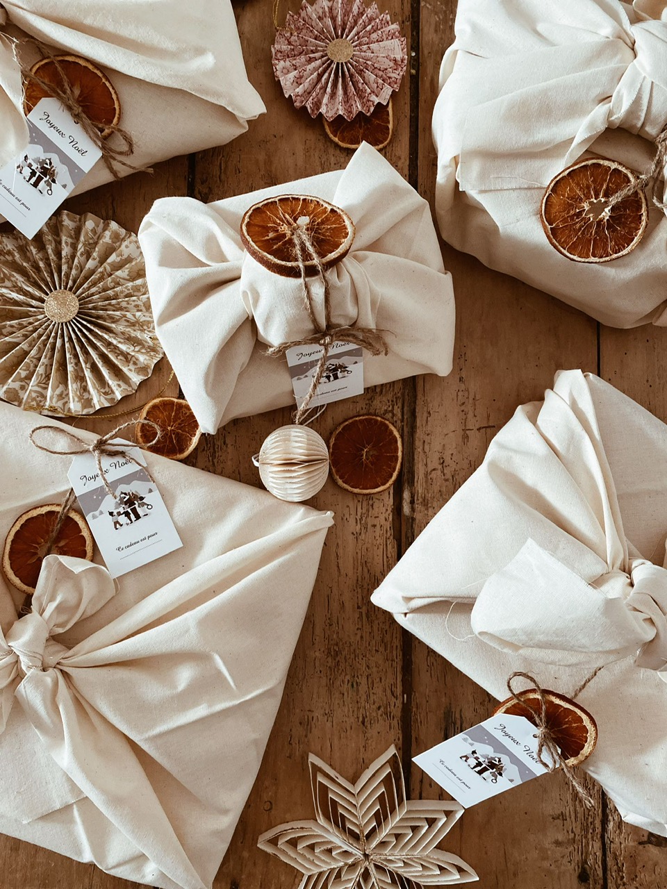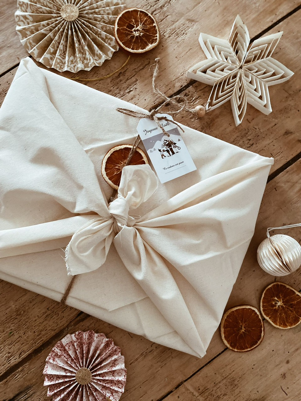 Le Furoshiki est une technique de pliage et de nouage de tissu d’origine japonaise. Il est utilisé pour emballer des cadeaux sans déchet.